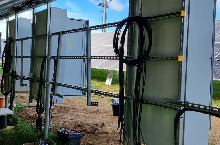 En combinant des équipes électriques internes, une supervision rigoureuse et une documentation claire, nous réduisons significativement les risques d’interface et garantissons des installations prêtes pour inspection, fiables et conçues pour une exploitation à long terme. Qu’il s’agisse d’une centrale photovoltaïque, d’un projet hybride ou d’un système de stockage autonome, nous livrons des infrastructures électriques sur lesquelles vous pouvez compter.